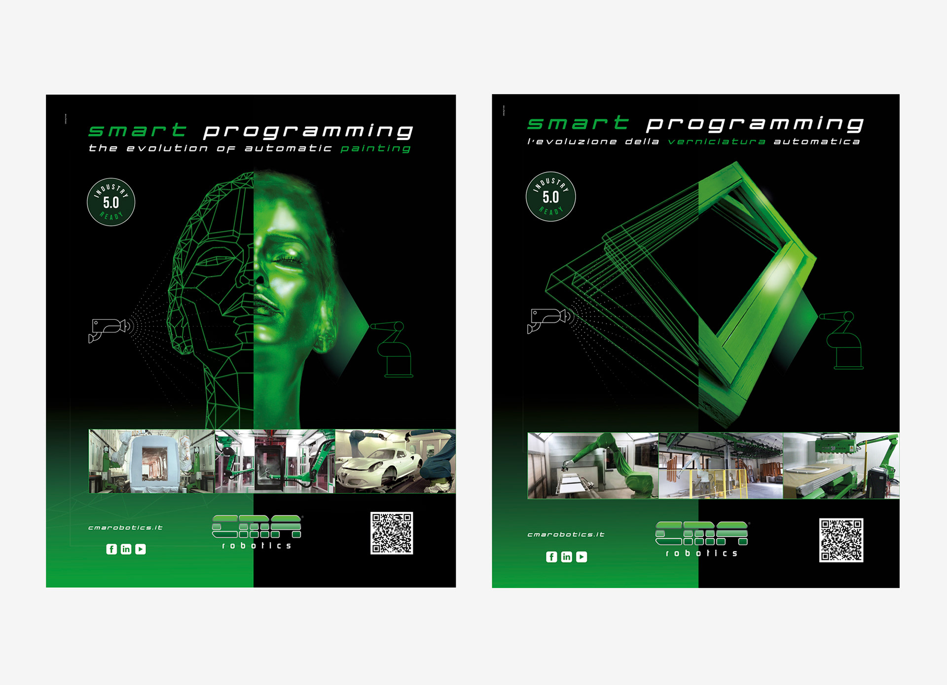 CMA Robotics SpA, nota azienda friulana specializzata nella produzione di robot per la veniciatura autoamtica, ci ha affidato il progetto del nuovo concept della campgna stampa su riviste specializzate italiane ed internazionali. L'idea vincente è stata la scelta di puntare strategicamente sulla vera innovazione tecnologica di CMA Robotics, ovvero la semplificazione intelligente della programmazione, aspetto cruciale del futuro dell'industria 4.0, volto ad una produzione più performante sotto tutti i punti di vista,